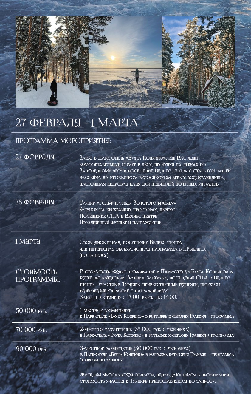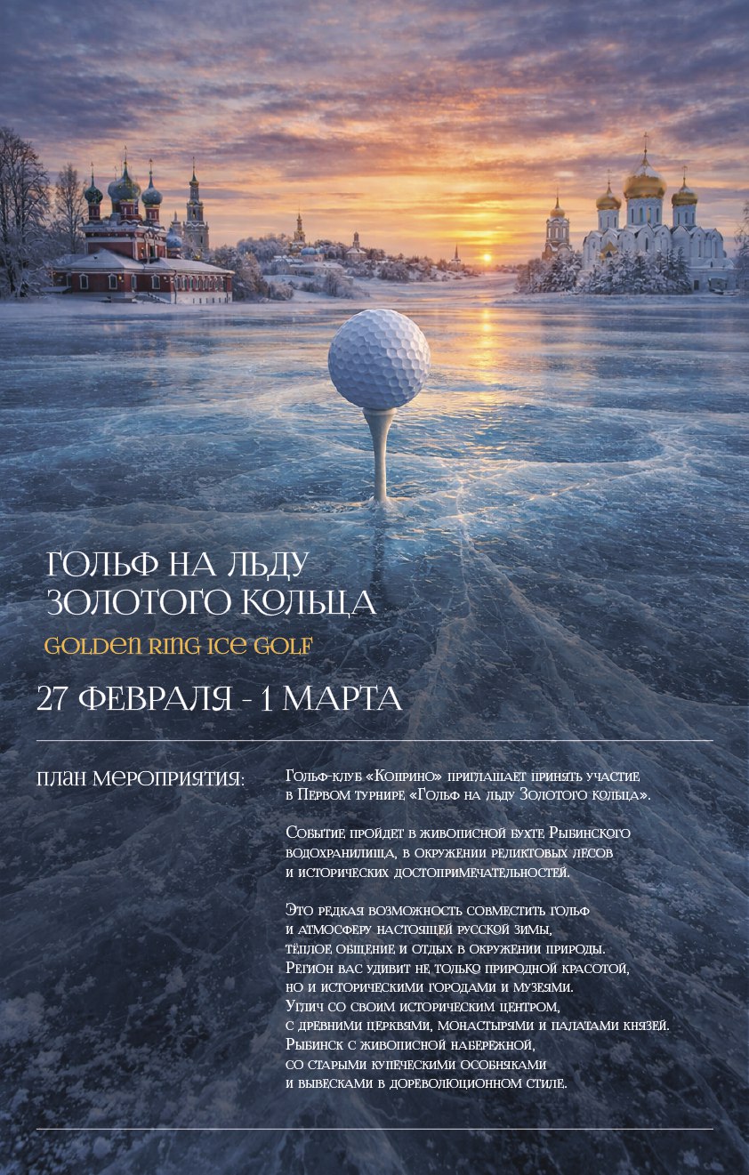 🏛 Экскурсии по Рыбинску или по Угличу— по желанию Редкая возможность совместить гольф, настоящую русскую зиму и атмосферу Золотого кольца.
