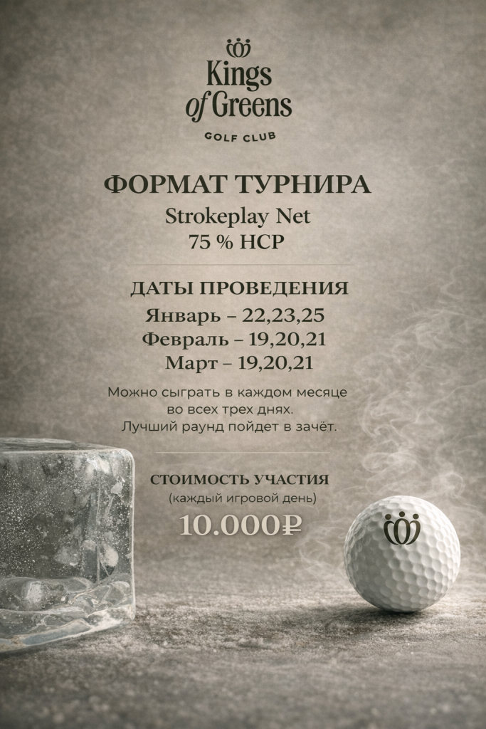 Открываем запись на зимнюю серию турниров ICE TEE CHALLENGE на гольф-симуляторах и разыгрываем главный приз — участие в открытии сезона Kings of Greens, 29 мая, в гольф-клубе Пестово!