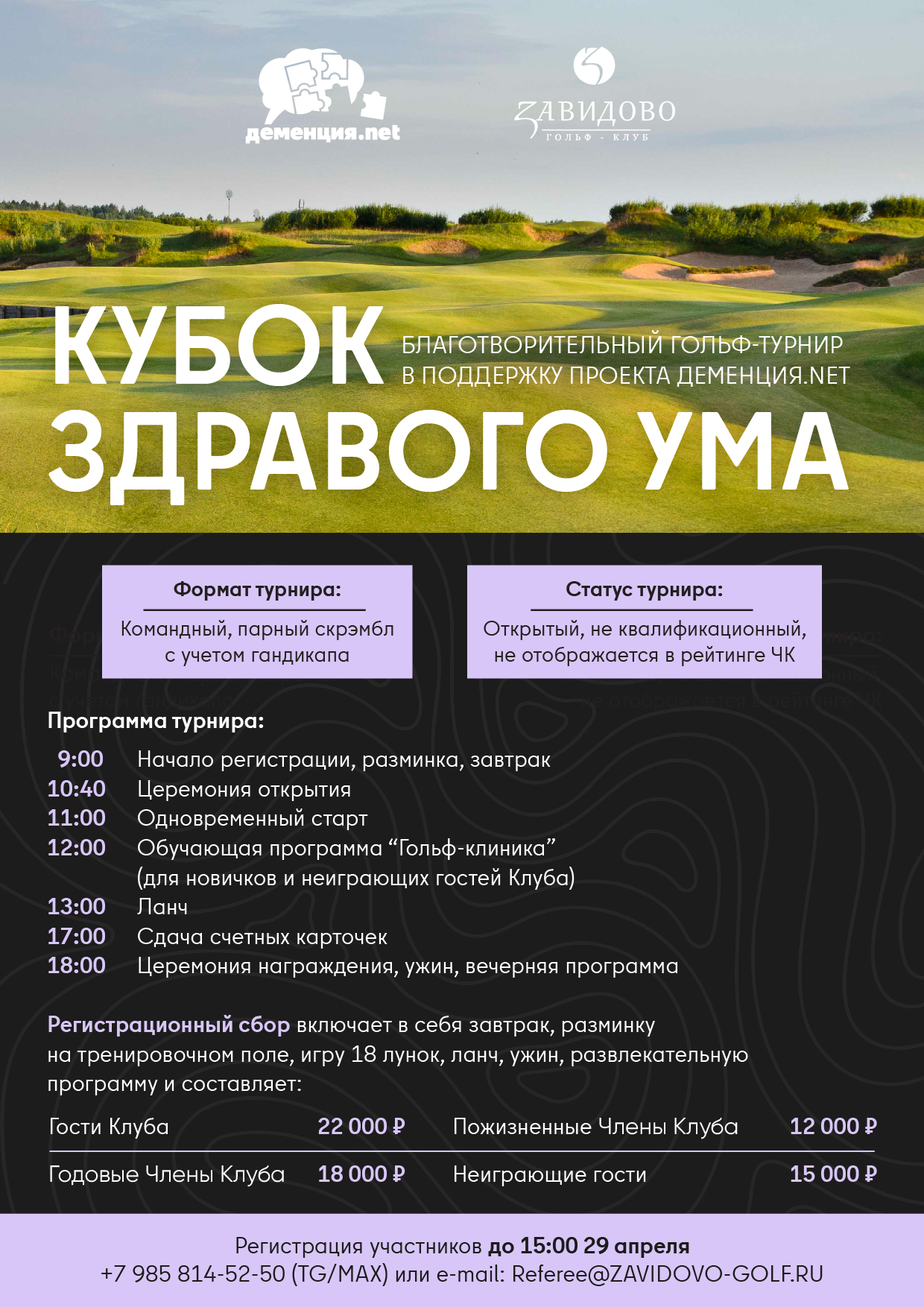 30 апреля в Гольф-клубе Завидово состоится благотворительный турнир «Кубок здравого ума».