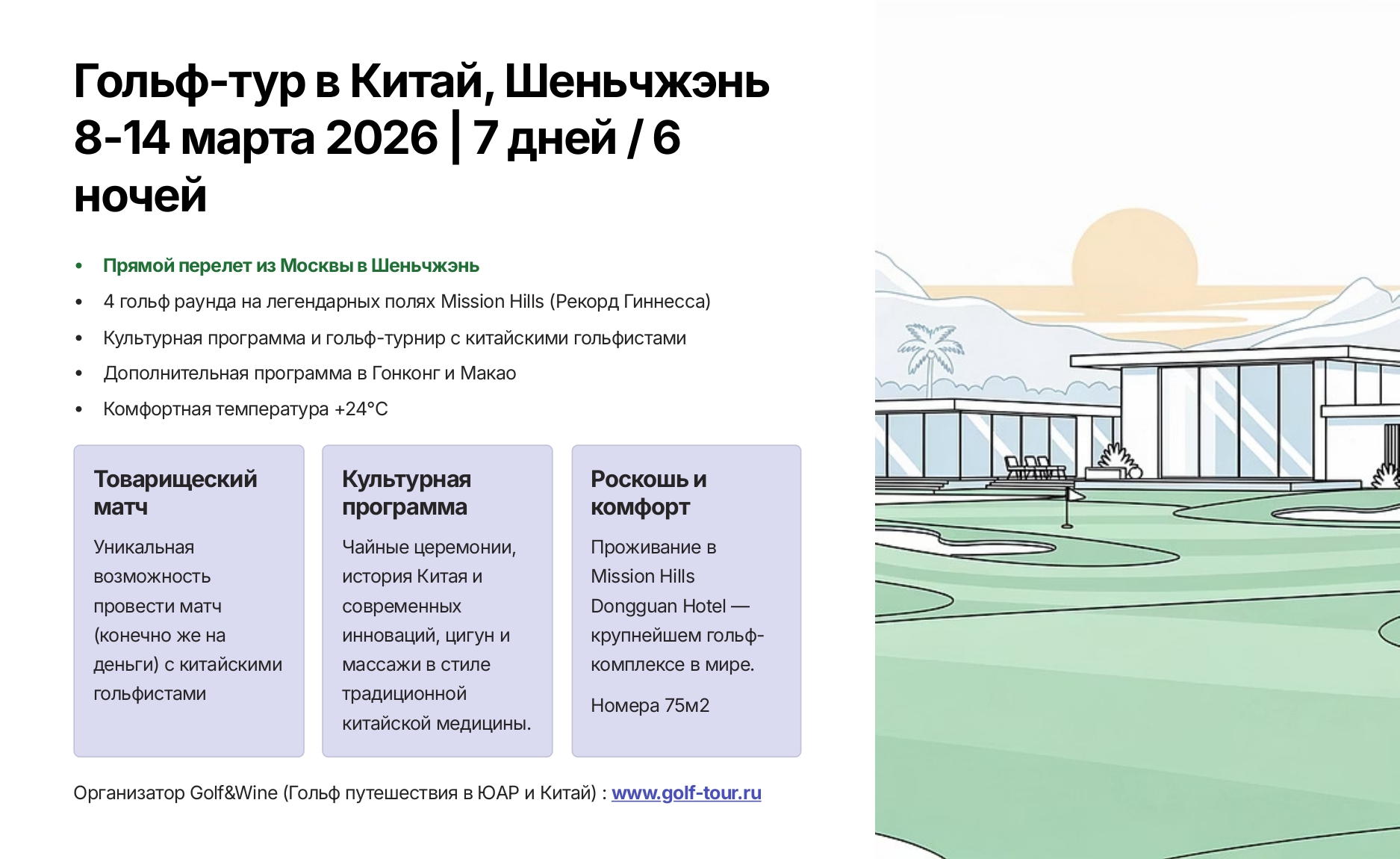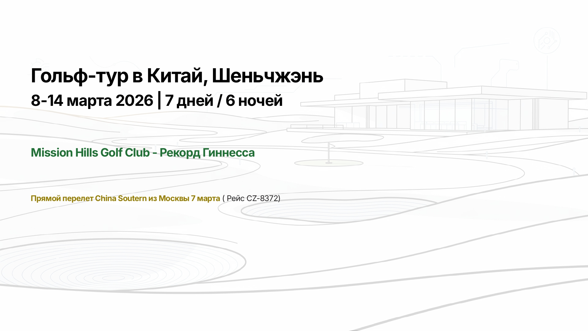 С 7 по 14 марта приглашаем вас в легендарный Mission Hills (Шэньчжэнь) ⛳️