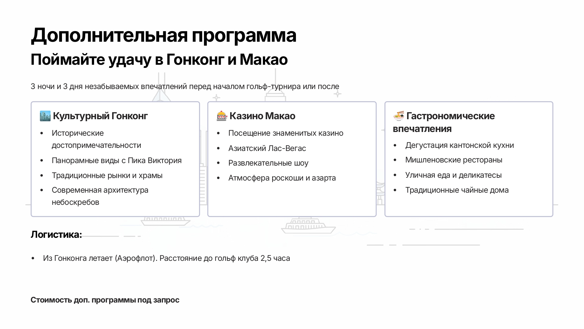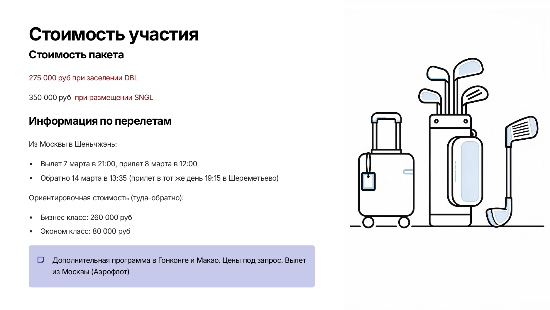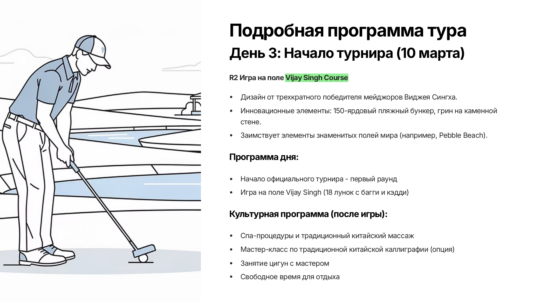 Группа подтверждена! Вылет из Москвы 7 марта. Прямой перелёт, +24 градуса тепла. Самая яркая неделя гольфа и отдыха в Азии по отличной цене ждёт вас!