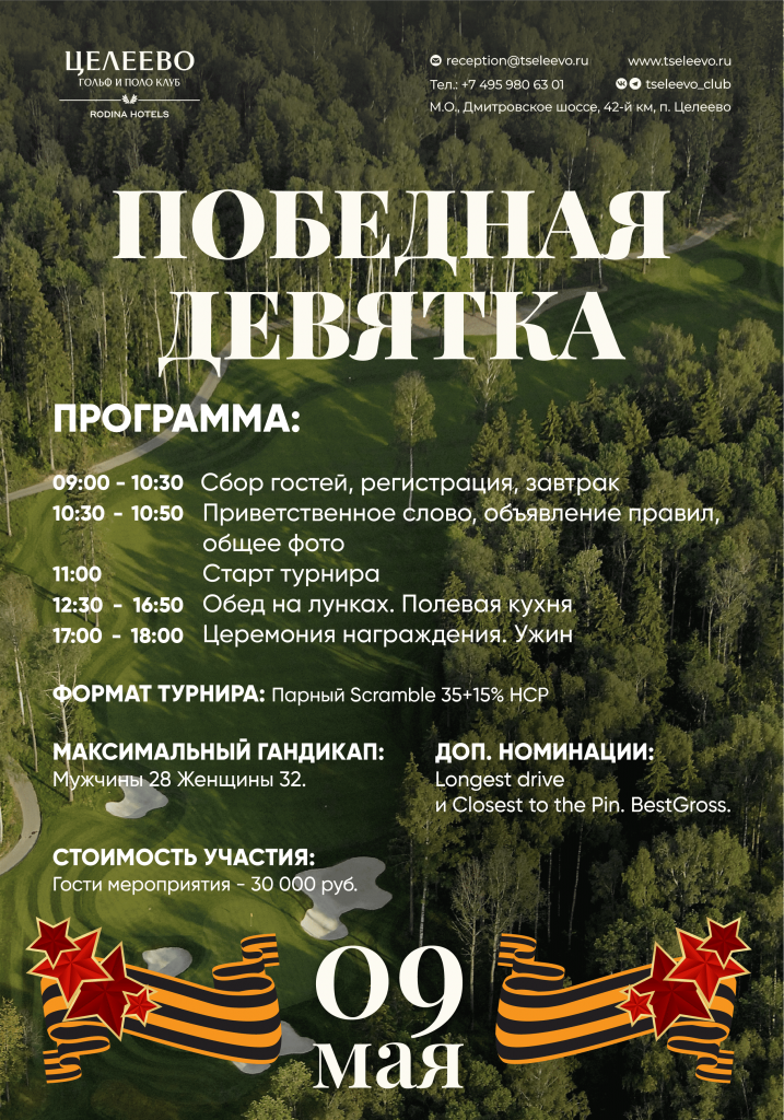 9 мая приглашаем Вас в Гольф Клуб Целеево на турнир, посвященный Дню Победы. Это